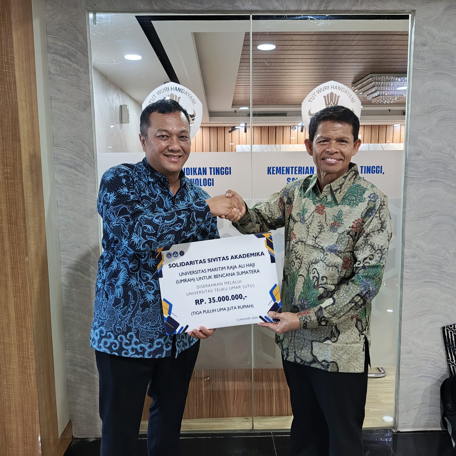 Jakarta – Universitas Maritim Raja Ali Haji (UMRAH) menyalurkan bantuan dana kemanusiaan sebesar Rp 35 juta untuk korban bencana banjir