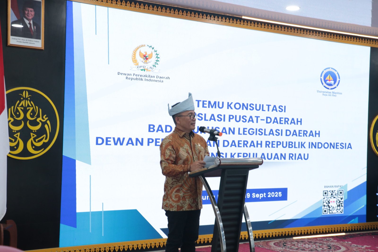 TANJUNGPINANG – Badan Urusan Legislasi Daerah (BULD) Dewan Perwakilan Daerah Republik Indonesia (DPD RI) mengadakan kegiatan Temu Konsultasi Legislasi Pusat-Daerah di Universitas Maritim Raja Ali Haji (UMRAH), Jumat (19/9). Acara ini berlangsung di Hall Galeri Tamadun Maritim, Gedung Ismeth Abdullah, Kampus UMRAH Dompak, Tanjungpinang, Kepulauan Riau.
