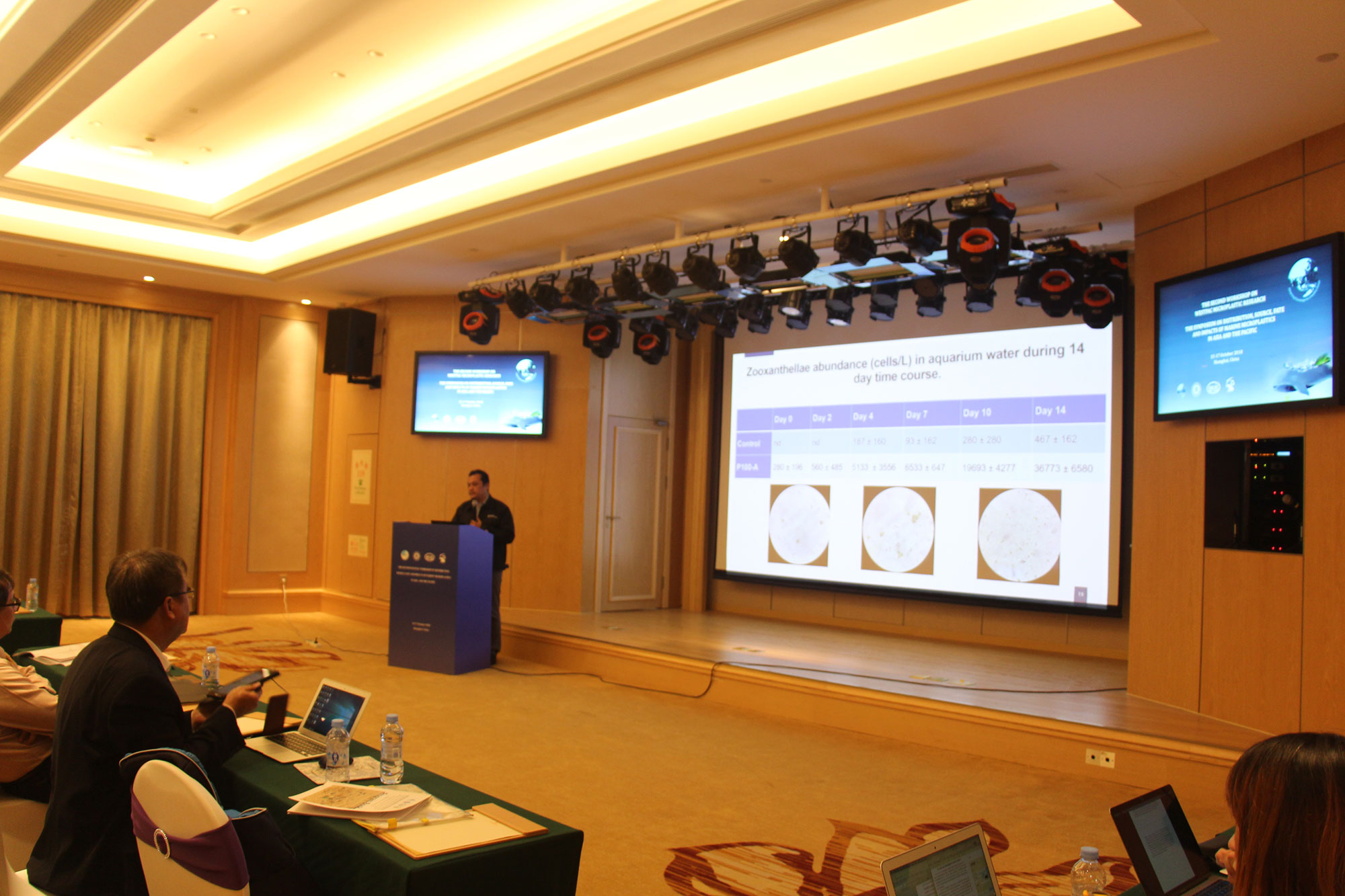 Dalam Simposium ini, Dekan FIKP, Dr. Syakti memaparkan hasil risetnya terkait dampak mikroplastik terhadap species karang dalam hal ini adalah Acropora formosa.