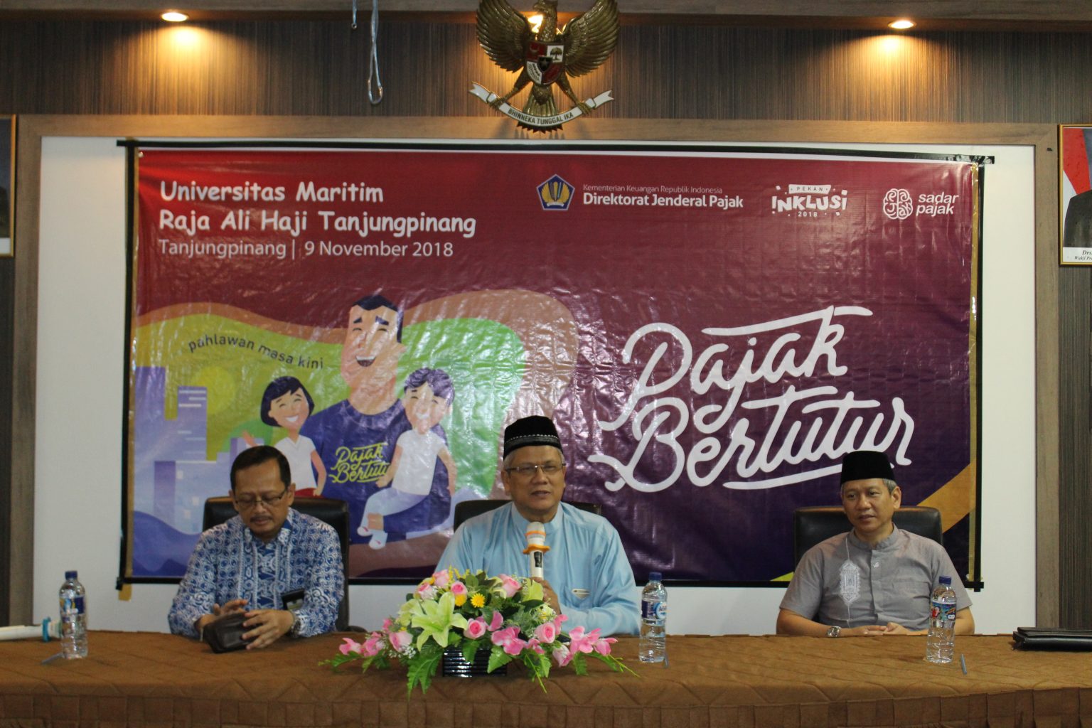 Tanjungpinang-Untuk meningkatkan kesadaran pajak kepada Mahasiswa, Direktorat Jenderal Pajak(DJP) melalui Kantor Wilayah DJP Provinsi Kepulauan Riau, menggandeng Universitas Maritim Raja Ali Haji (UMRAH) sebagai tuan rumah pelaksanaan kegiatan Pajak Bertutur yang juga dilaksanakan serentak secara nasional bertempat di Ruang Rapat serbaguna lantai 3 Rektorat UMRAH Dompak, Jum’at(09/11).