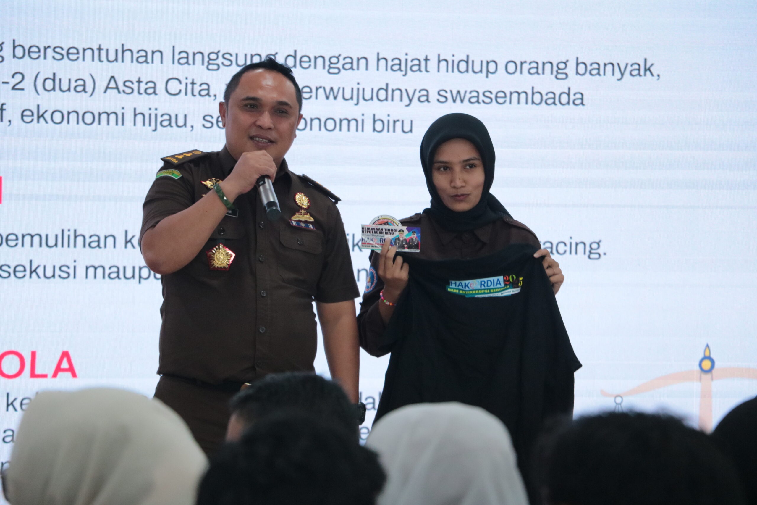 Ismail juga memaparkan secara rinci kewenangan Kejaksaan dalam penanganan perkara korupsi, mulai dari penyidikan, penuntutan, hingga pemulihan kerugian negara, sehingga mahasiswa dapat memahami bagaimana proses pemberantasan korupsi dijalankan secara sistematis.