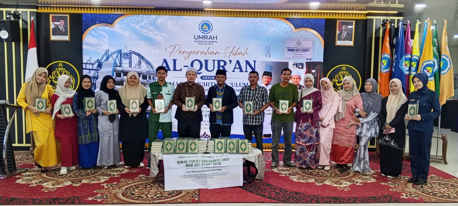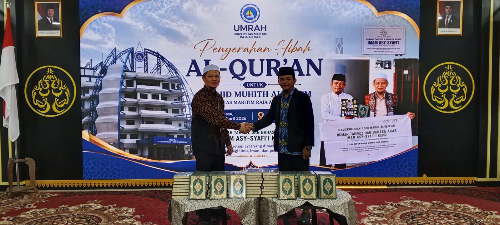 TANJUNGPINANG – Masjid Muhith Al ‘Ulum Universitas Maritim Raja Ali Haji (UMRAH) menerima hibah sebanyak 90 eksemplar Al-Qur’an dari Rumah Tahfidz dan Bahasa Arab Imam Asy-Syafi’i Provinsi Kepulauan Riau. Penyerahan hibah ini menjadi bagian dari upaya bersama dalam mendukung penguatan nilai-nilai keagamaan di lingkungan kampus.