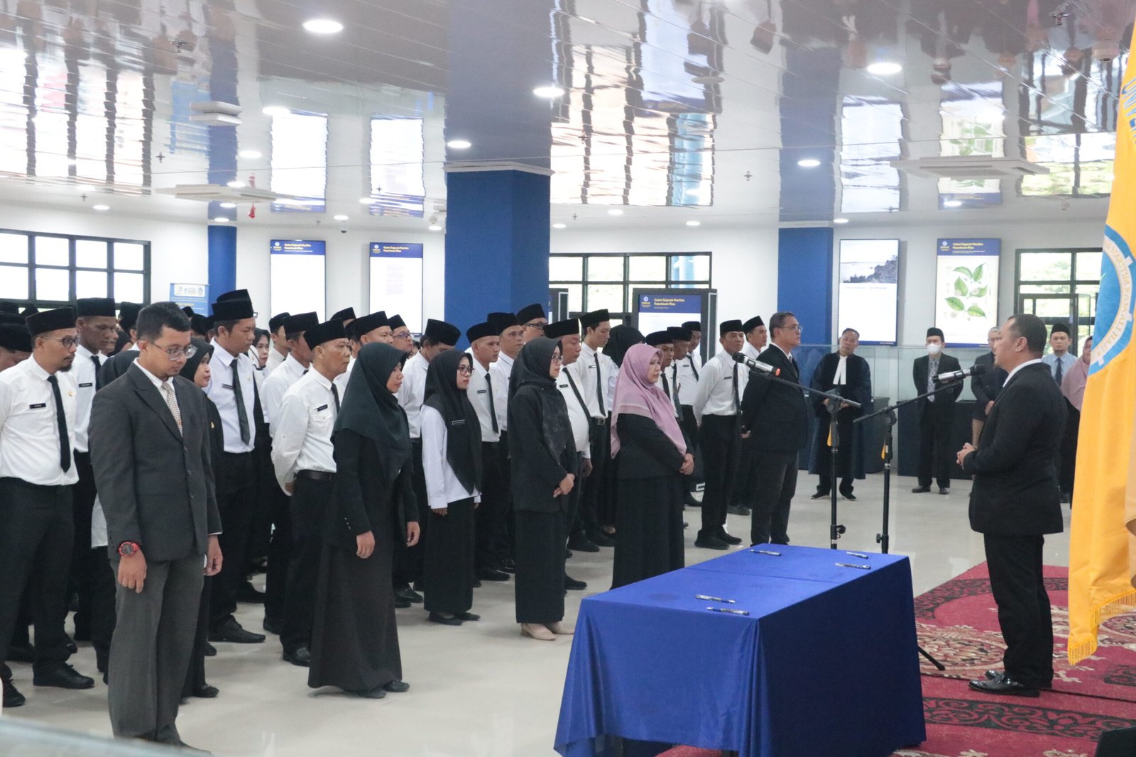 Dalam sambutannya, Rektor Agung menyampaikan arahannya kepada para ASN PPPK yang baru dilantik agar senantiasa menjunjung tinggi profesionalisme, loyalitas, dan semangat kebersamaan dalam menjalankan tugas.