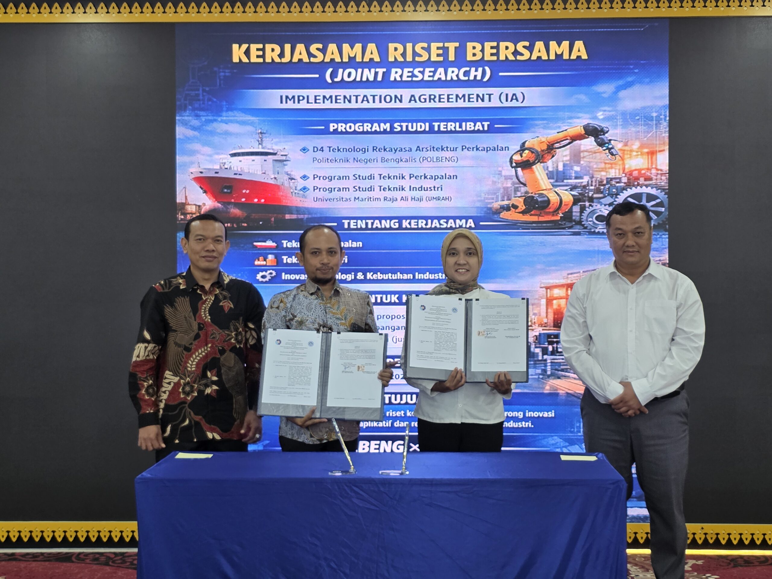 - Program Studi Terlibat: D4 Teknologi Rekayasa Arsitektur Perkapalan (Polbeng), Program Studi Teknik Perkapalan (UMRAH), dan Program Studi Teknik Industri (UMRAH).