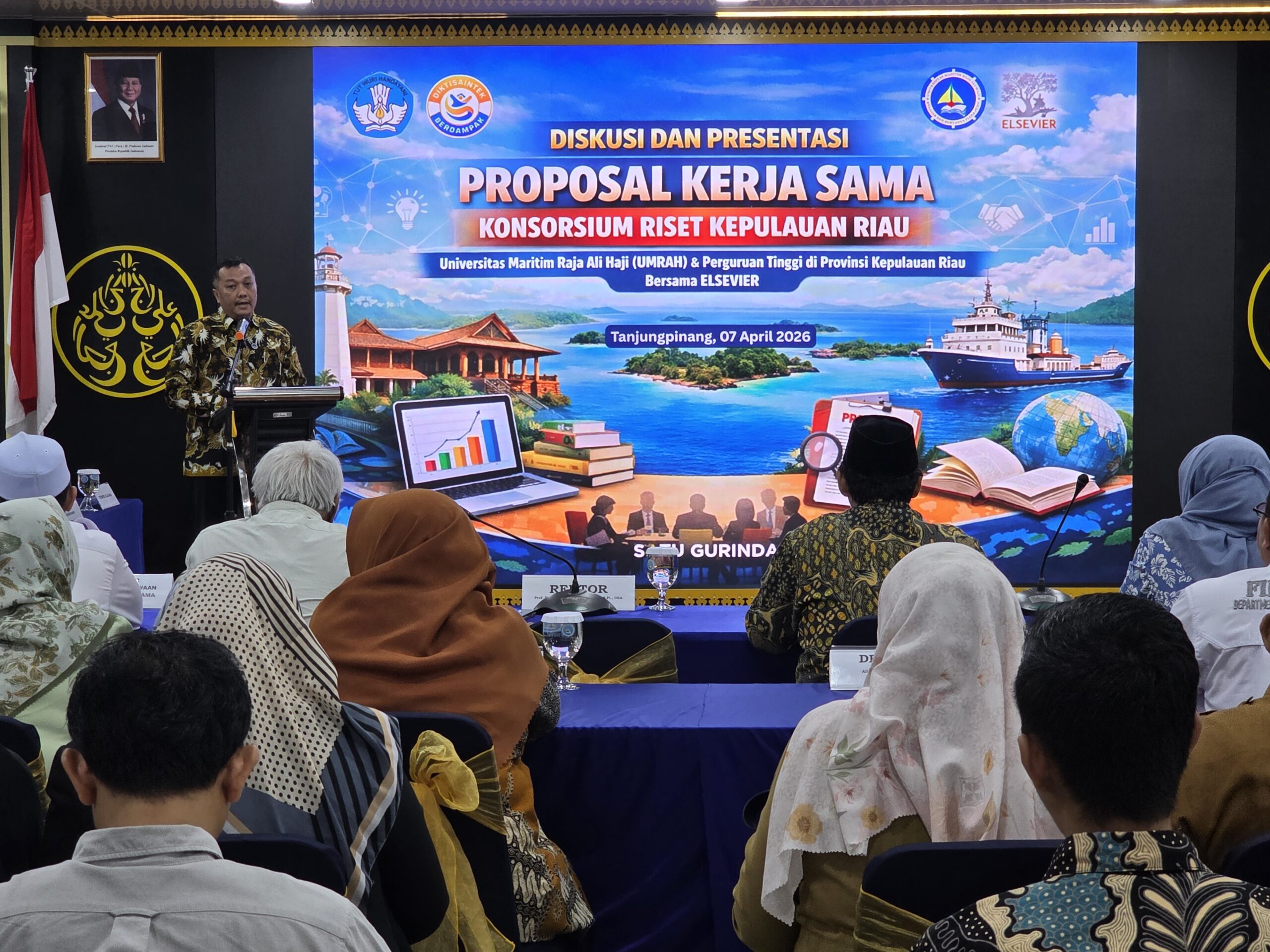 TANJUNGPINANG – Universitas Maritim Raja Ali Haji bersama perguruan tinggi se-Kepulauan Riau menggelar kegiatan Diskusi dan Presentasi Proposal Kerja Sama Konsorsium Riset Kepulauan Riau bersama Elsevier. Kegiatan ini berlangsung di Hall Galeri Tamadun Maritim, Gedung A Satu Gurindam–Ismeth Abdullah, Kampus UMRAH Dompak, Selasa (7/4).