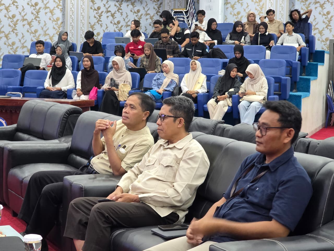 Selain pemaparan materi, suasana kegiatan berlangsung interaktif dengan adanya sesi tanya jawab yang aktif antara peserta dan narasumber. Mahasiswa memanfaatkan kesempatan ini untuk menggali lebih dalam terkait teknik penyusunan proposal, pemilihan topik yang relevan, hingga strategi agar proposal memiliki nilai kebaruan dan kebermanfaatan yang tinggi.